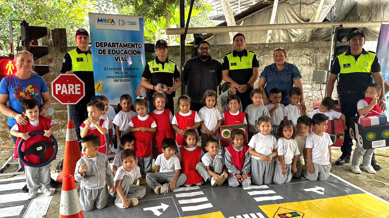 En la parroquia Honorato Vásquez del cantón Santa Ana, nuestros agentes de Educación Vial llegaron hasta el Centro de Educación Inicial "Mis Primeras Ilusiones" para compartir una jornada de aprendizaje con los más pequeñitos y sus familias.