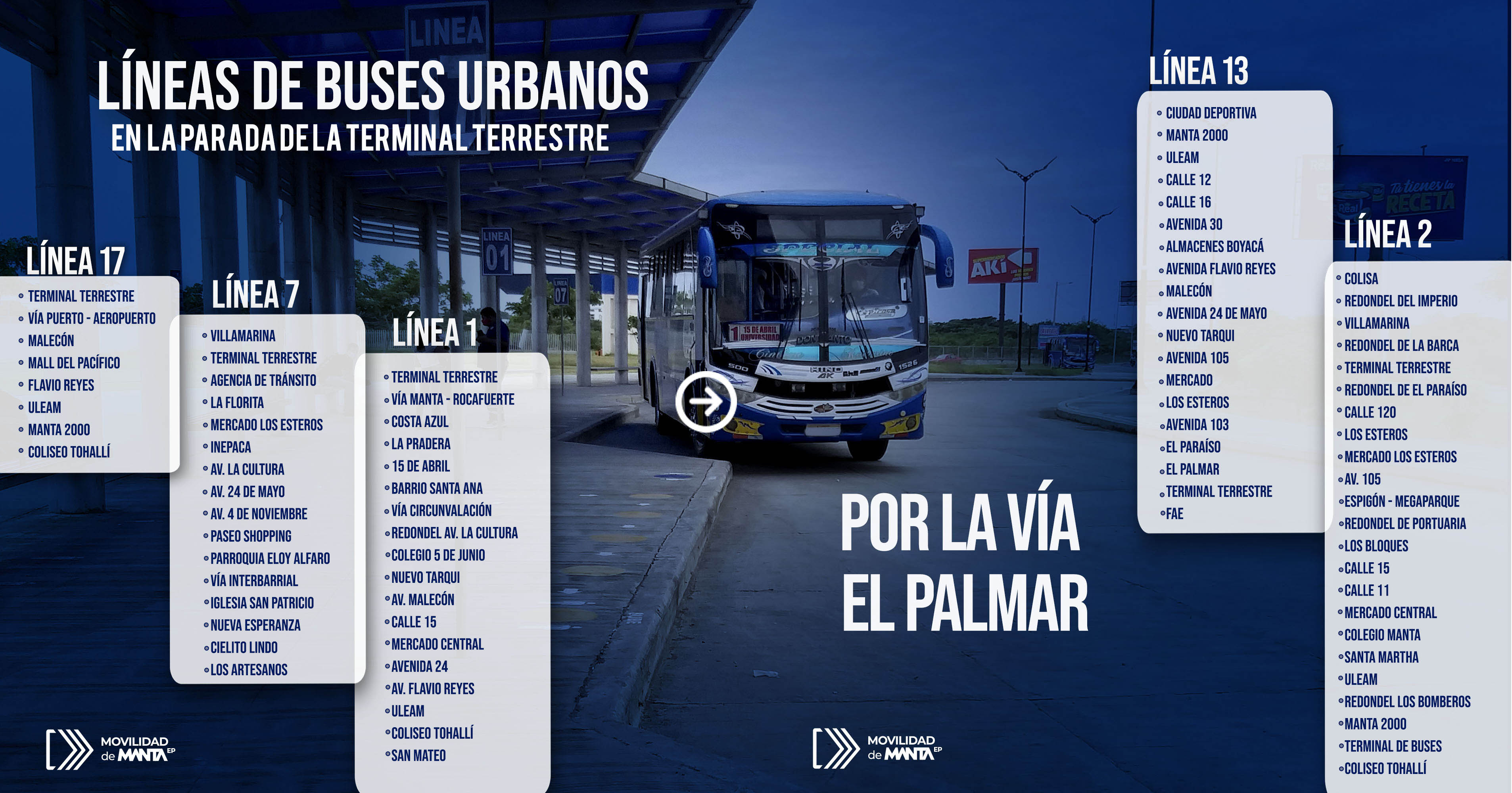 Desde la Empresa Pública Movilidad de Manta se trabaja para dar seguridad en las vías, promover el cumplimiento de la Ley de Tránsito; y administrar la Terminal Terrestre y su centro comercial de forma eficaz.
